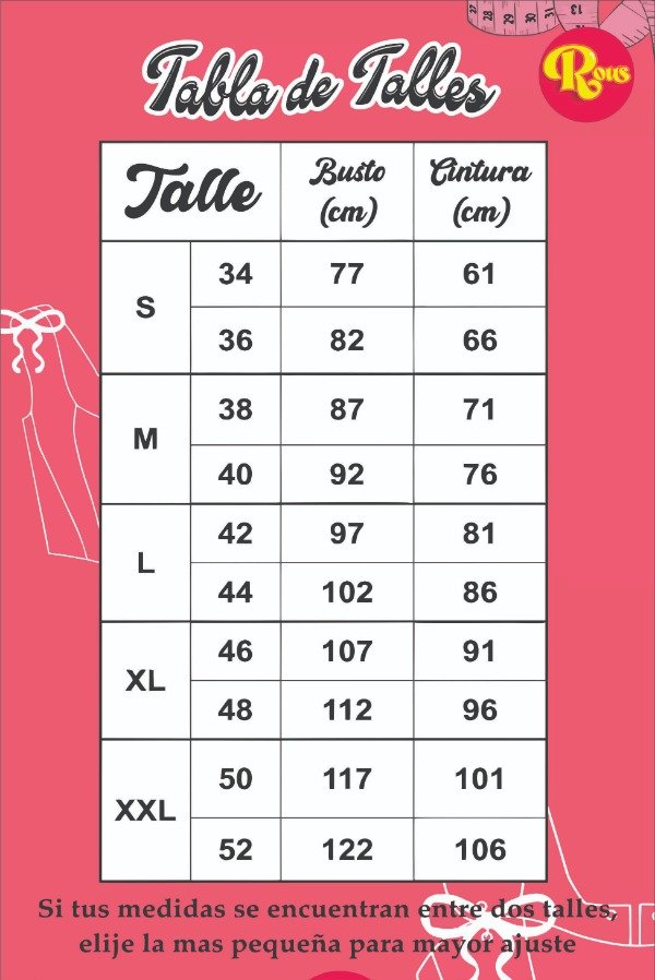 Necesitamos algunas medidas para que el corset se adapte perfecto a vos.
