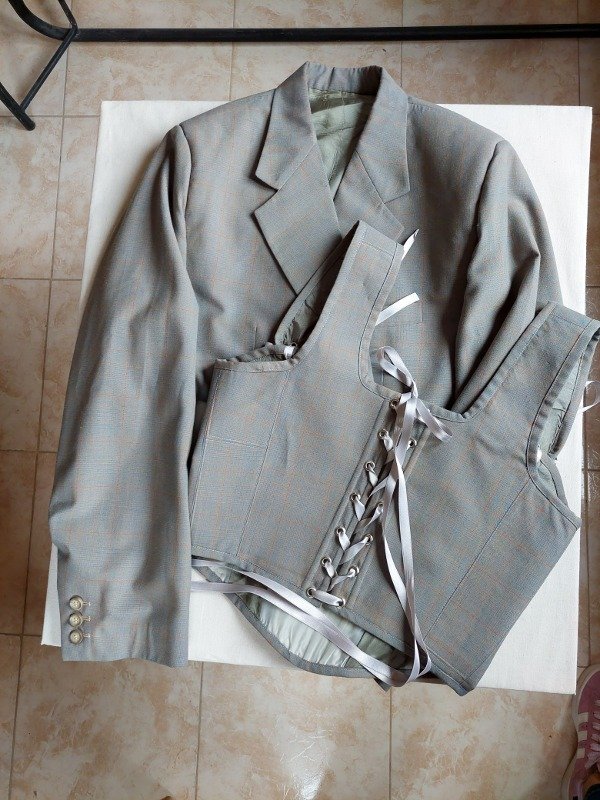 Este conjunto combina un corset único, que incluye 6 varillas internas para un soporte semi rígido y un ajuste personalizado gracias a las cintas de raso en la espalda y los hombros, con un elegante blazer crop. El blazer llega a la cintura y cuenta con hombreras que estilizan la figura, proporcionando una silueta de reloj de arena. Cada pieza es confeccionada a mano, asegurando detalles exclusivos y una calidad superior.