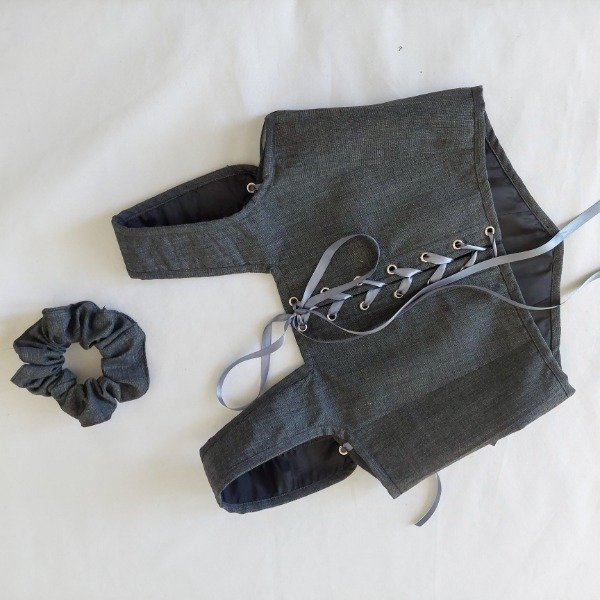 Esta pieza incluye un scrunchie confeccionado en el mismo textil de pana original como obsequio del Atelier para completar tu look.