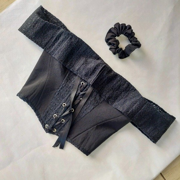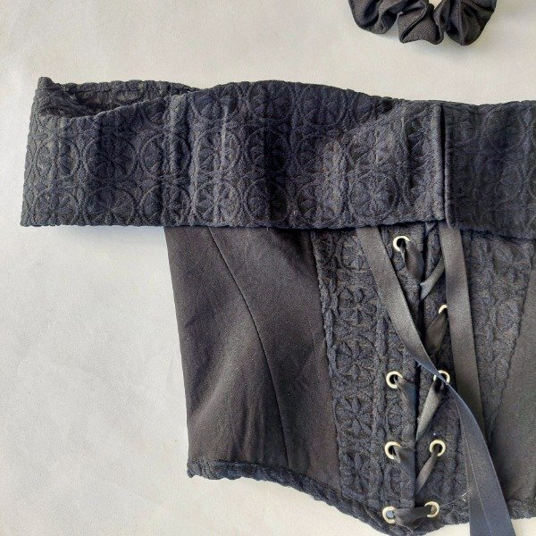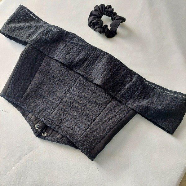 El modelo MAGNÍFICA es la máxima expresión de la elegancia y la distinción. Su diseño se destaca por el imponente cuello volcado, que enmarca los hombros y el escote con un aire de sofisticación absoluta. En esta edición, hemos fusionado la sobriedad de la tela sastrera negra con la delicadeza de un encaje de algodón labrado, creando un juego de texturas mate que es puro lujo visual. Su estructura interna de ballenas de alta densidad ofrece un soporte firme (sensación semi-rígida) que moldea el torso y realza la postura, logrando una silueta impecable y poderosa