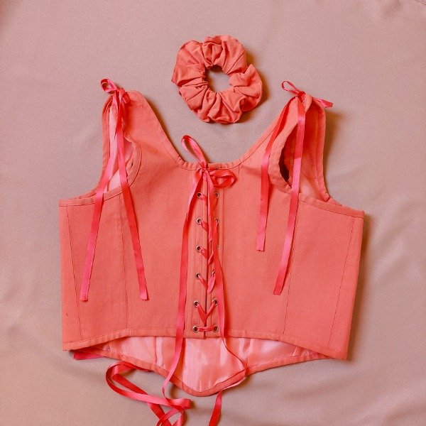 Este corsé está hecho 100% a mano por nosotras. Es una pieza única y exclusiva confeccionado en tela bengalina rigida en tono coral o durazno. Su diseño cautivador se complementa con el modelo "poderosa", que se ata en la espalda, creando una prenda verdaderamente especial.